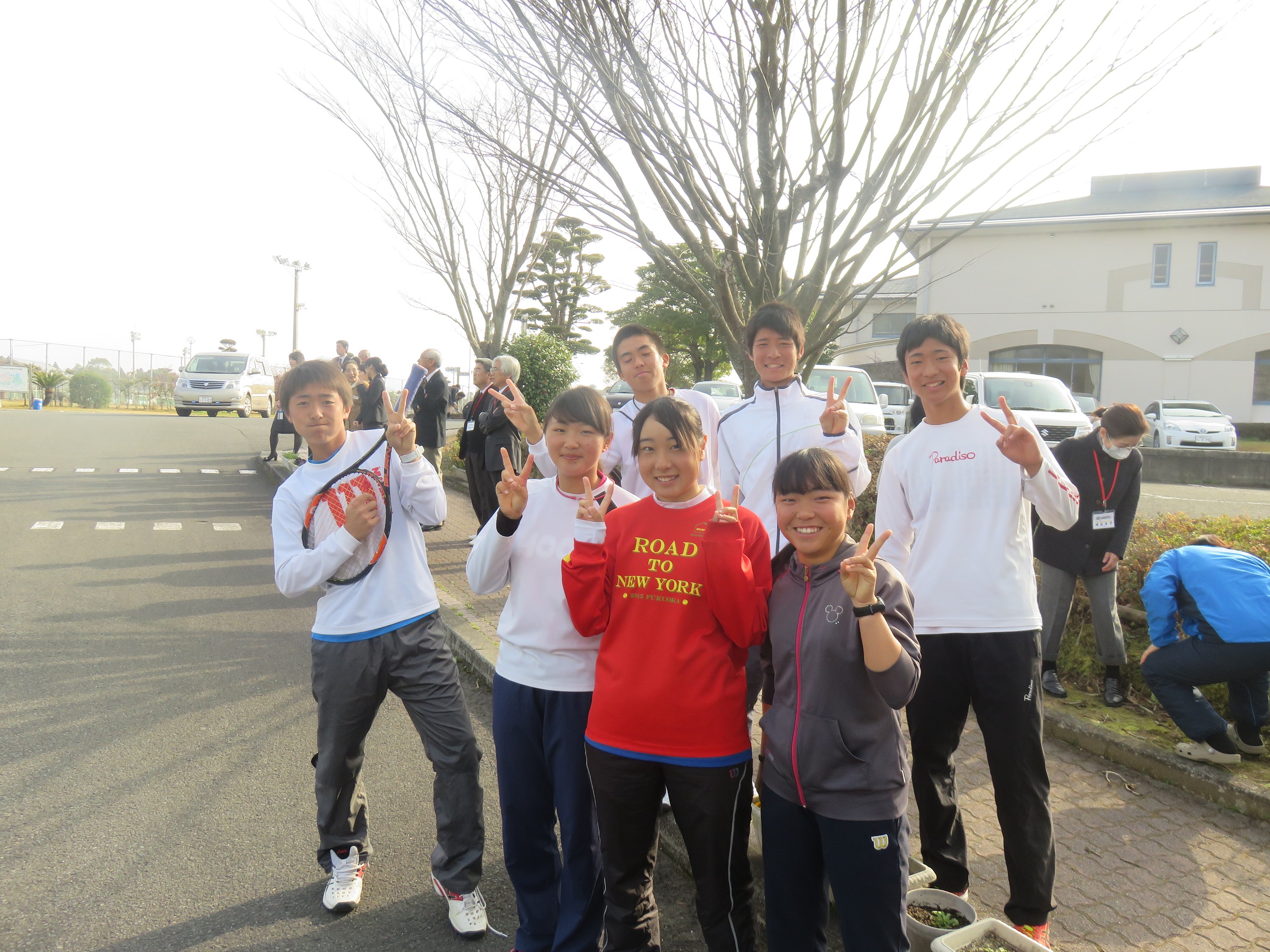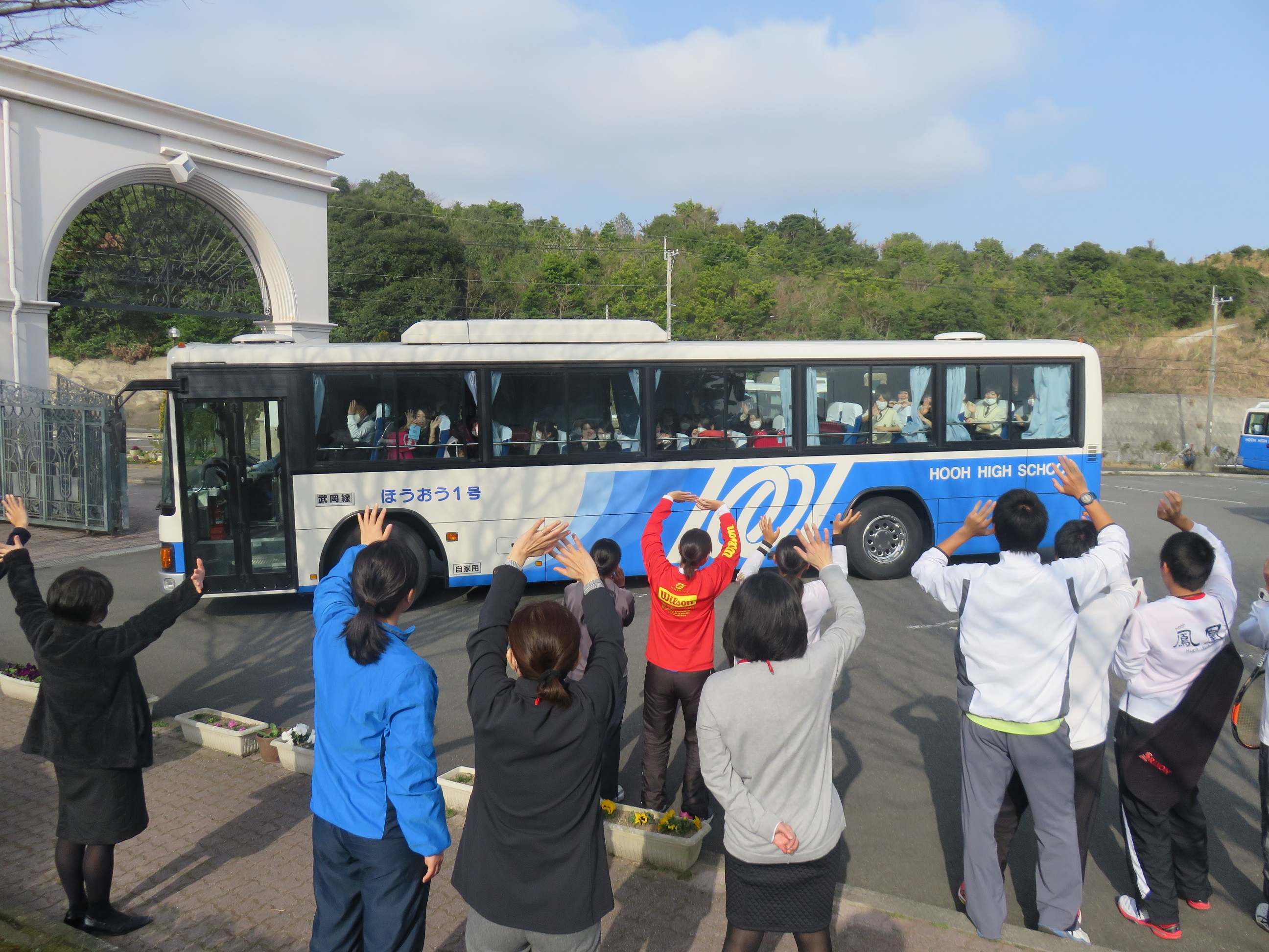大会が近いため、不参加の男女硬式テニス部の皆さんも見送りに駆けつけてくれました。