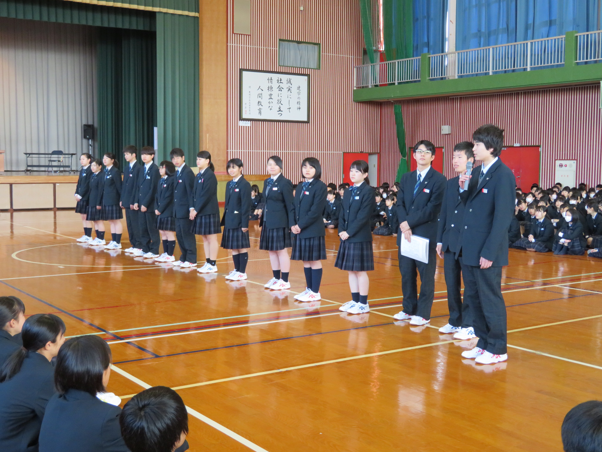 その後、生徒会執行部の各役員の紹介があり、「分からないことは遠慮なく先輩達に聞いて欲しい!」と歓迎しました。