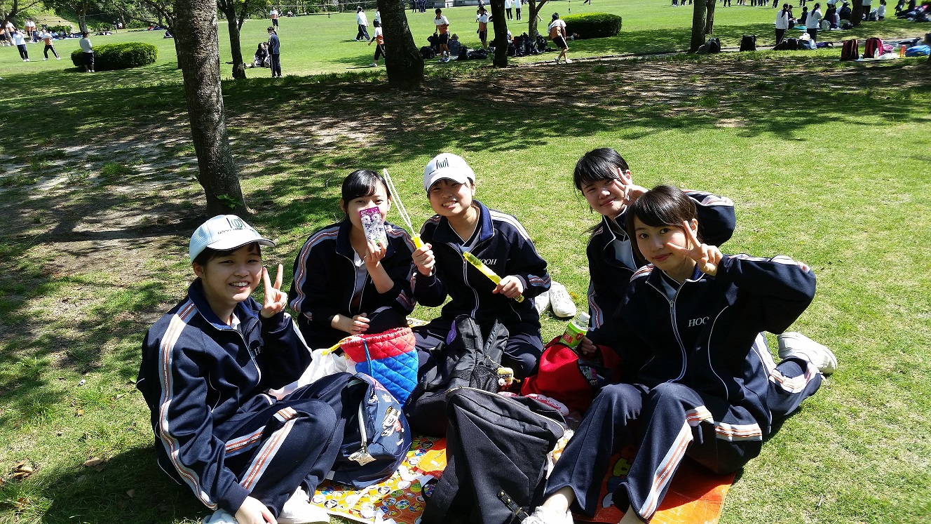 その後、隣接の錦江湾公園へ出かけ、生徒たちは、間近に見る雄大な桜島に感動していました。