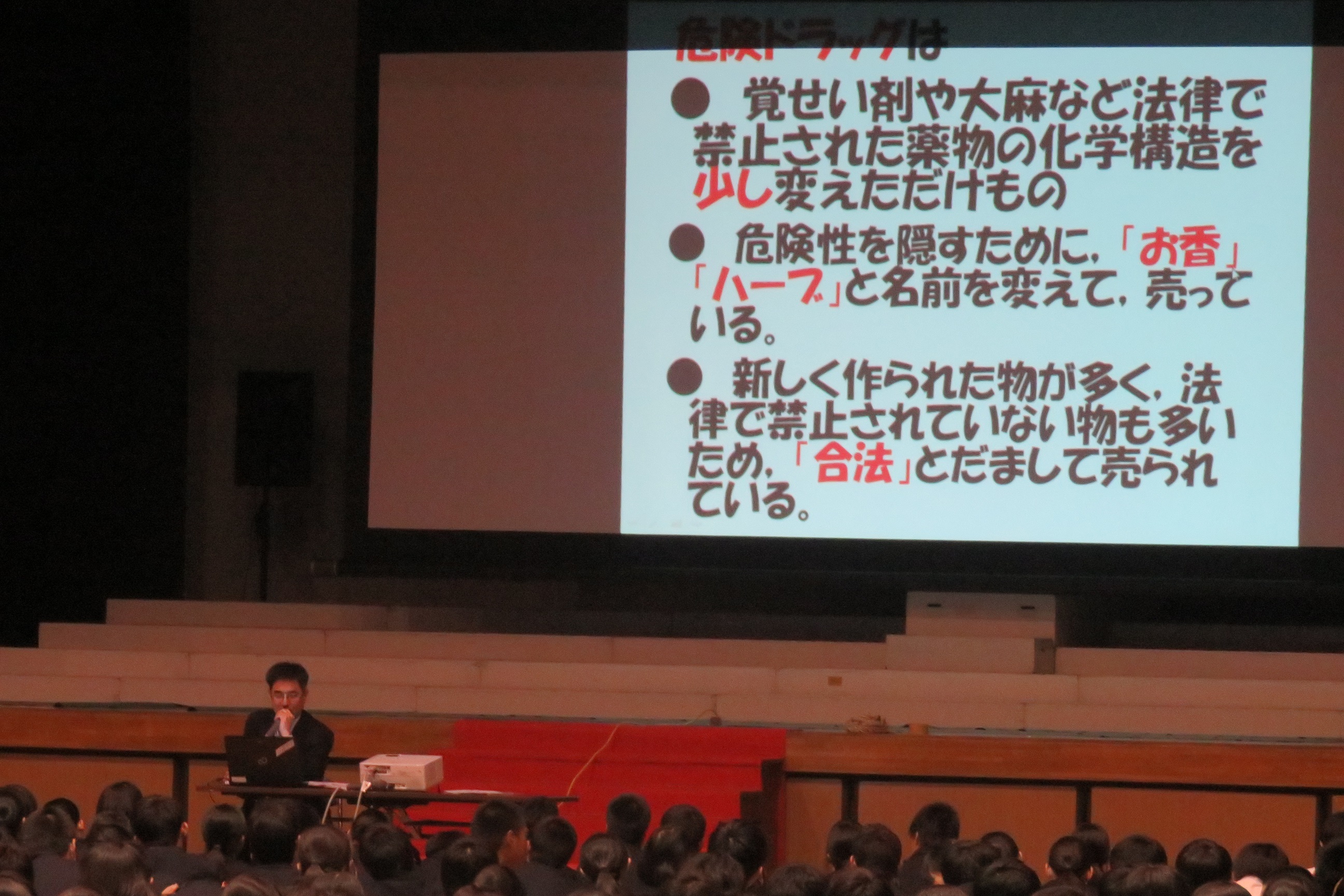 4/26 防犯教室・交通安全教室 2016年4月26日 最終更新日時 : 2019年4月4日 hooh 25日(月)6・7限に防犯教室・交通安全教室が行われました。 登下校時の交通安全のポイントについて警察の方にお話しをいただきました。 また、防犯教室では具体的な事例を元にドラッグの怖さ・SNSによるトラブルなどを紹介いただきました。 本校でも登下校時はスクールバス・自家用車・バイク・自転車などで大変混雑する状況です。 生徒・職員ともに、改めて交通安全を意識していきましょう。 ↓↓↓ クリック・タップしてください。 4月行事予定 1学期行事予定