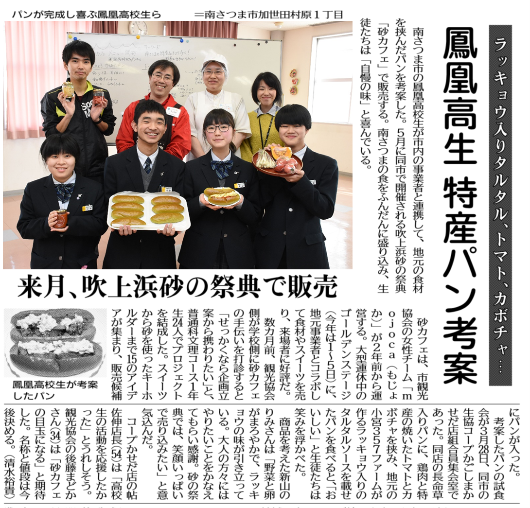 4月4日(木)の南日本新聞に本校文理コース新2年生が考案した特産パンについての掲載がありました。
