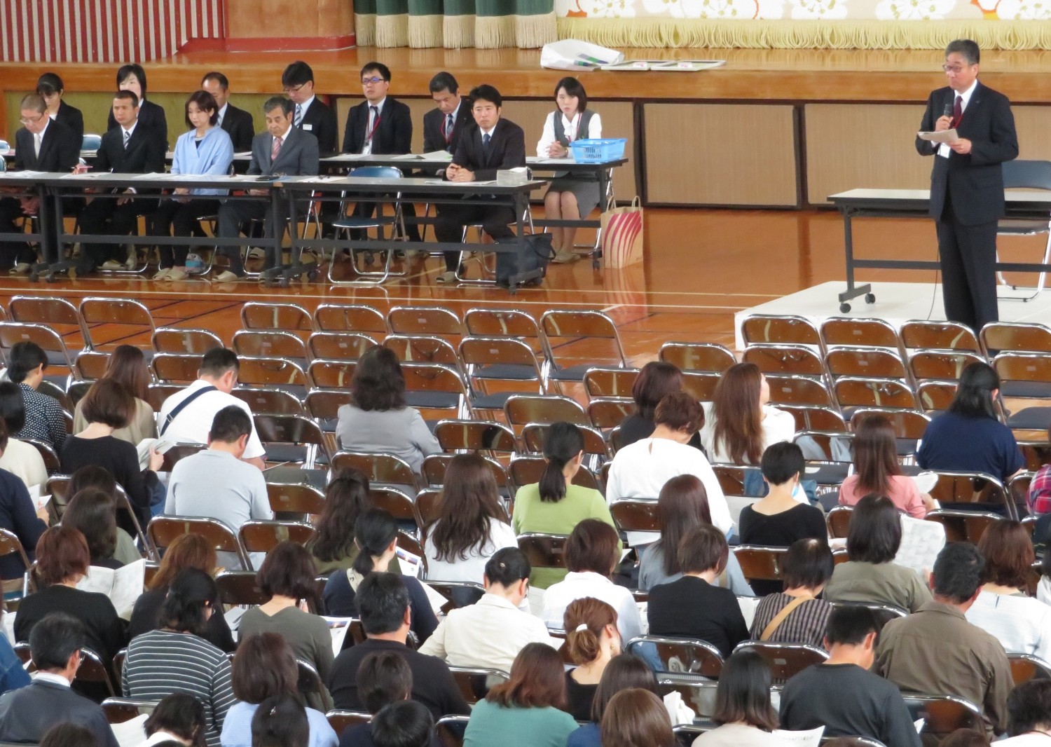本日、令和元年のPTA総会が本校にて行われました。朝は雨上がりで足下の悪い中、多くの保護者の皆様にお集まりいただきました。9:20から武道館にて役員会、10:00から体育館にて総会、その後各クラスの教室などで、クラス会や三者面談を実施しました。