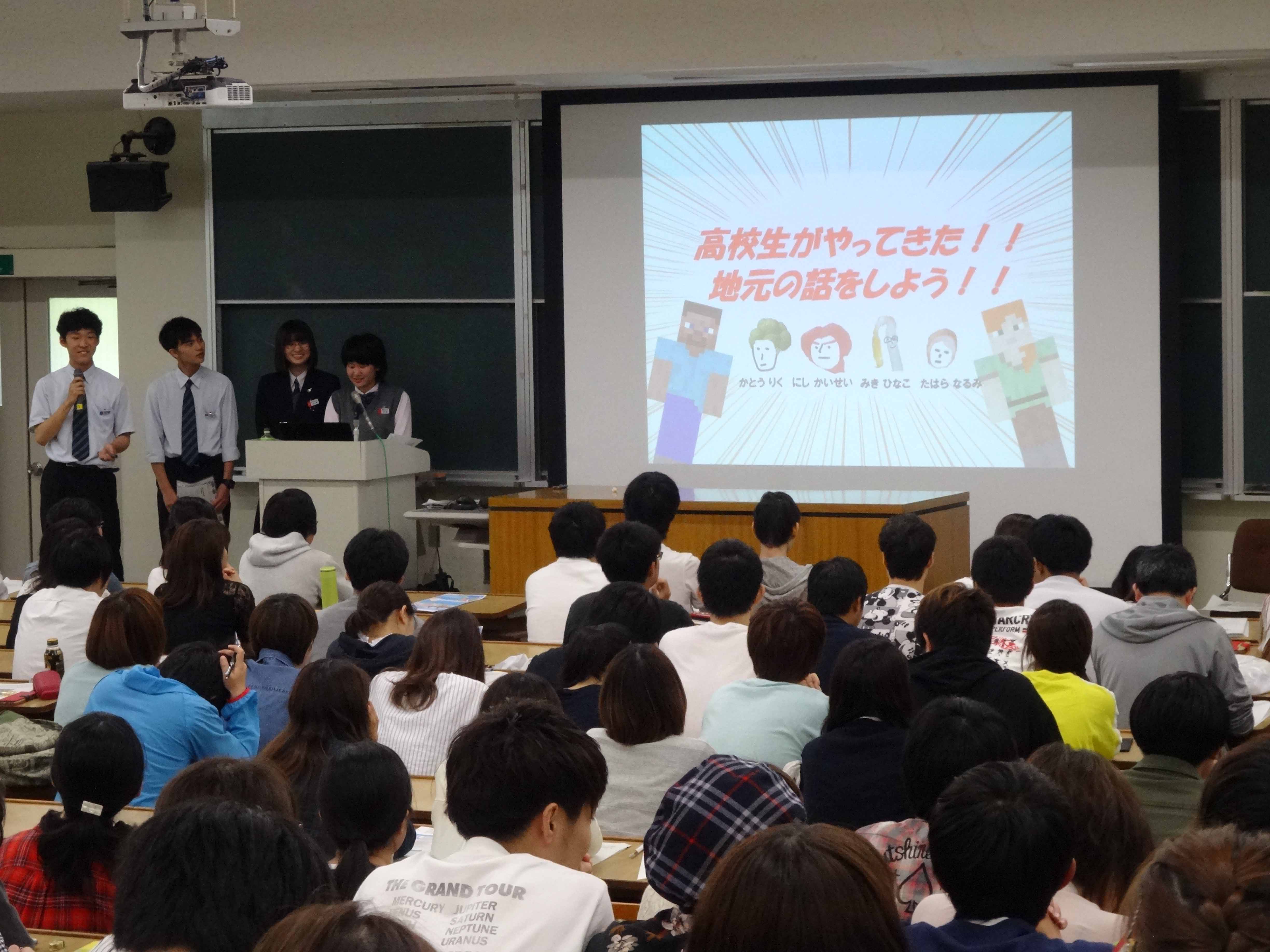 昨日、鹿児島大学の講義「自治体政策論」の中で、15分の時間を頂き「南さつま飛びたて高校生事業」で本校が南さつま市に採用された「サイクリングPR活動」の紹介をおこなってきました。プレゼンテーションをおこなったのは、文理の3年生男子2人と2年生女子2人。