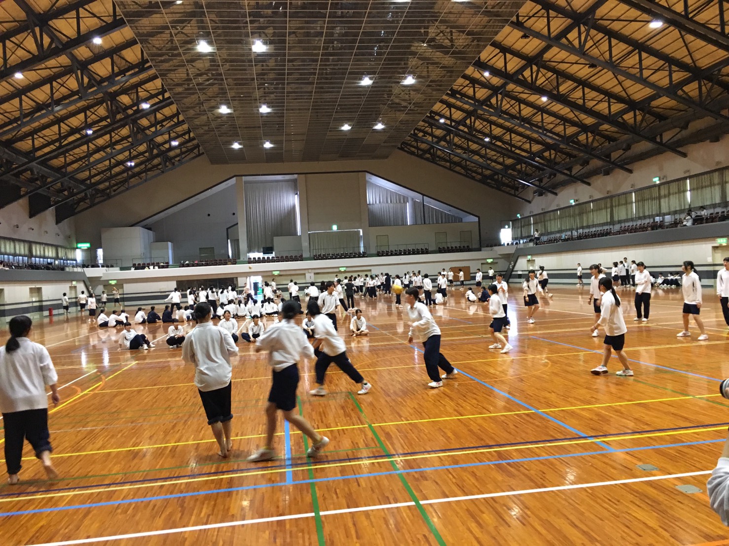 午前中は加世田運動公園体育館でドッジボールなどのレクリエーションを行いました。
