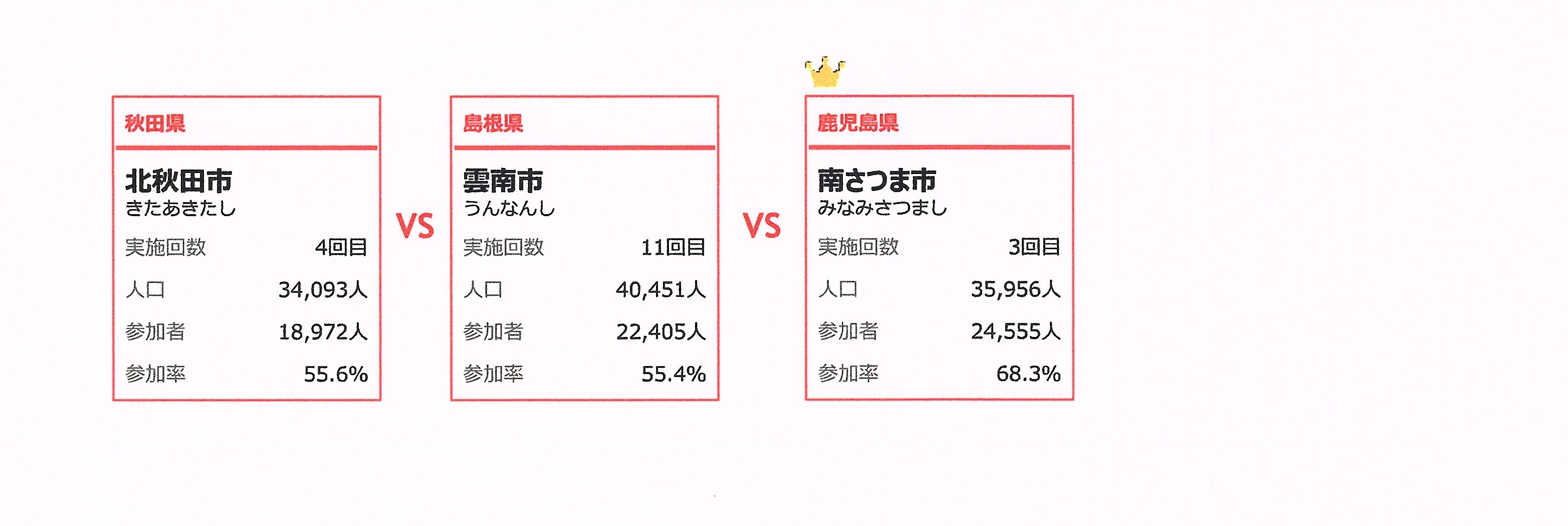 しかし、上には上がいるものです。同じ鹿児島県の霧島市は参加率90.1%と驚異的な数字。