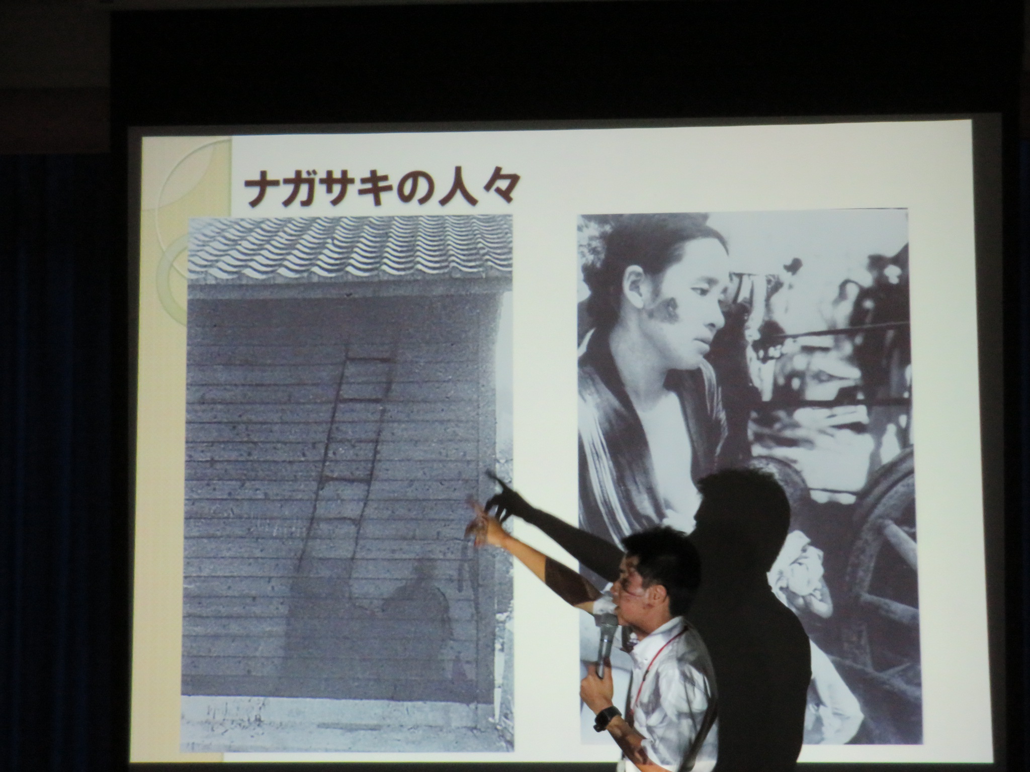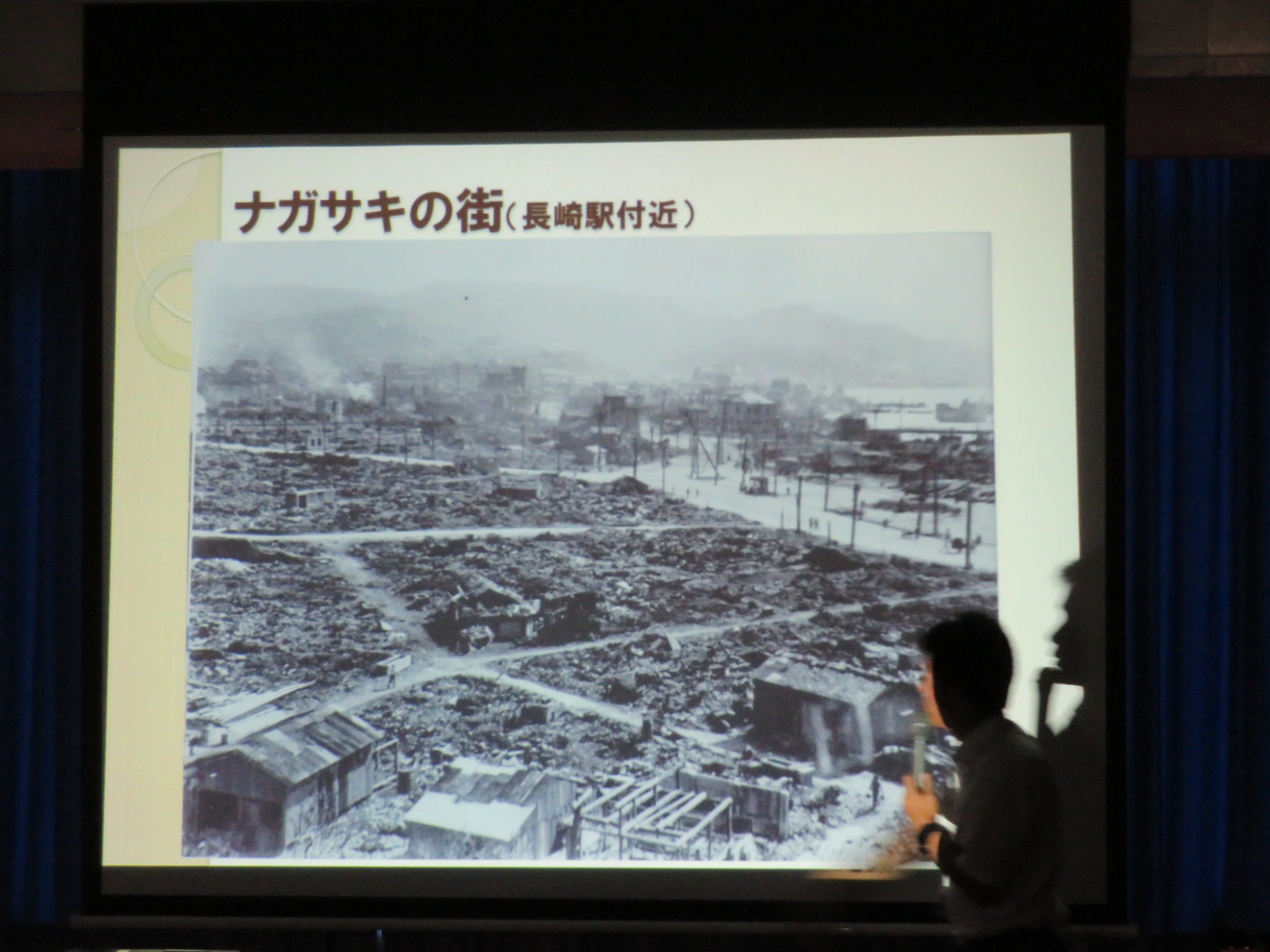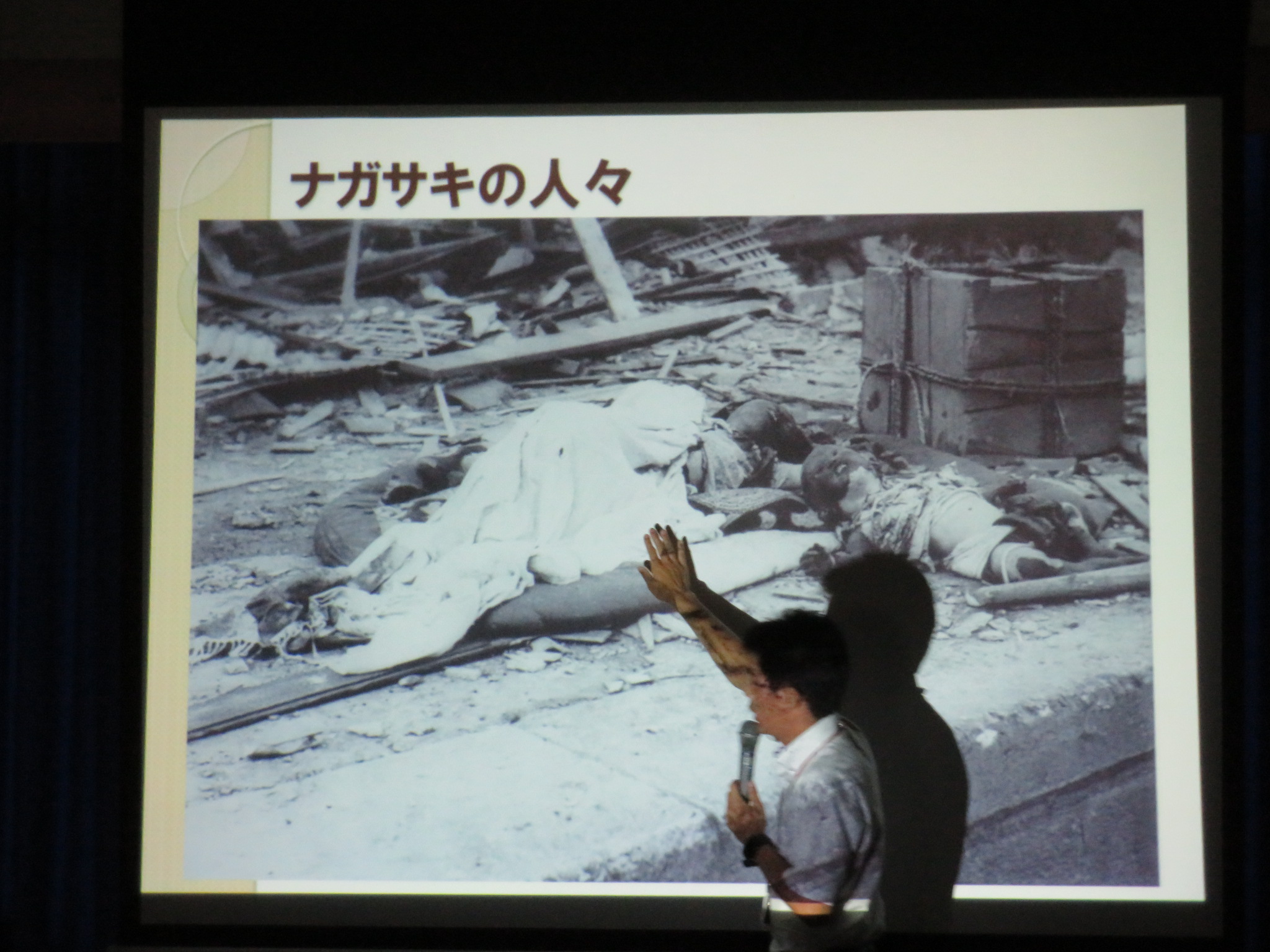 生徒たちは実際の核爆弾や被害者の方々,爆撃前と後の街の写真や映像を見ながら真剣に耳を傾けていました。