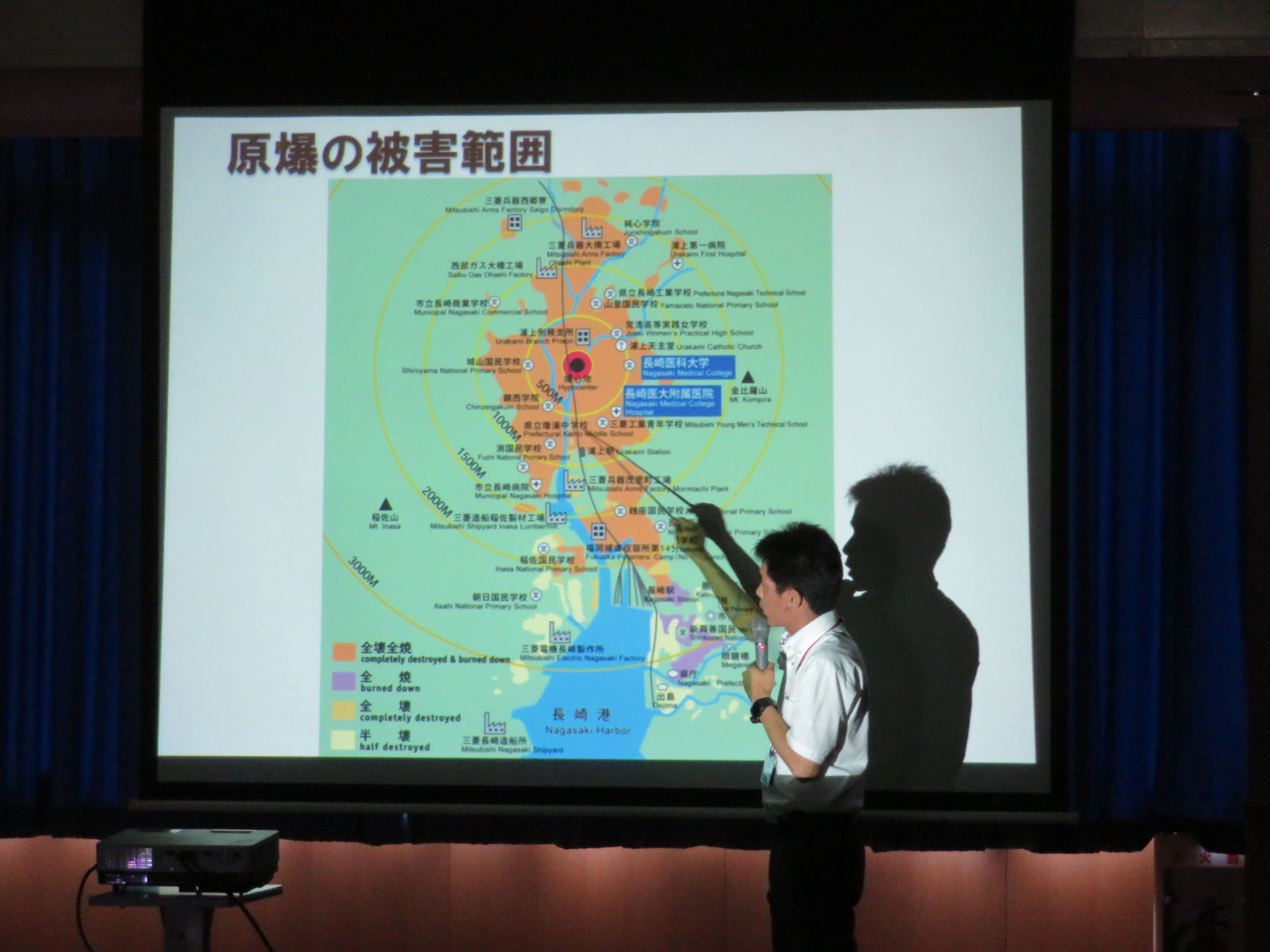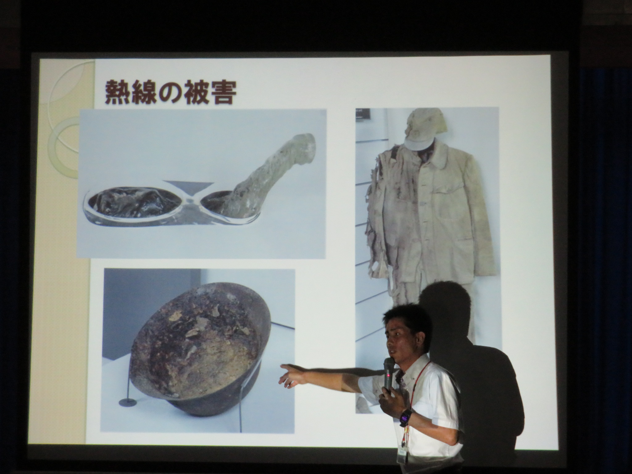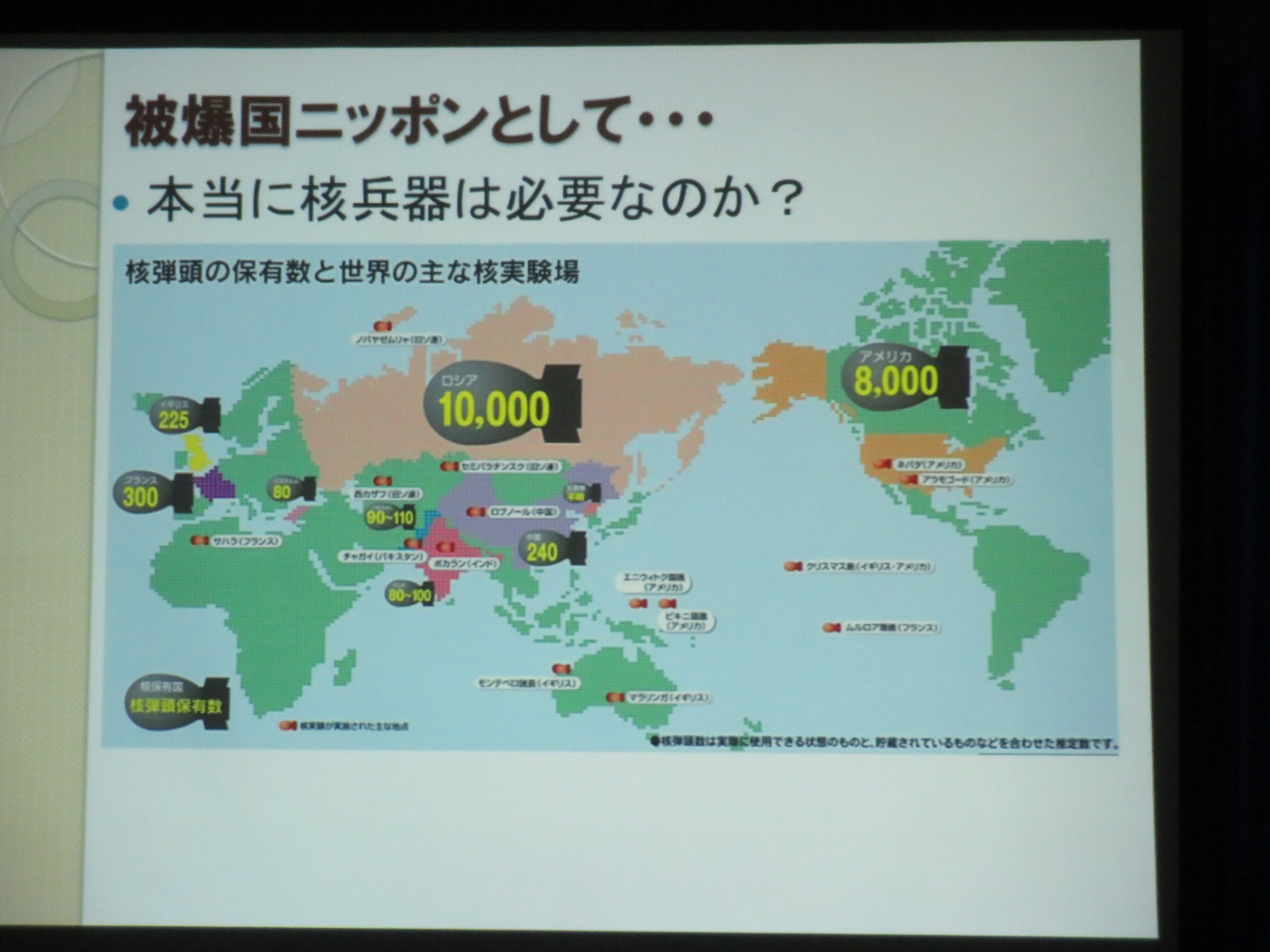 生徒たちは実際の核爆弾や被害者の方々,爆撃前と後の街の写真や映像を見ながら真剣に耳を傾けていました。