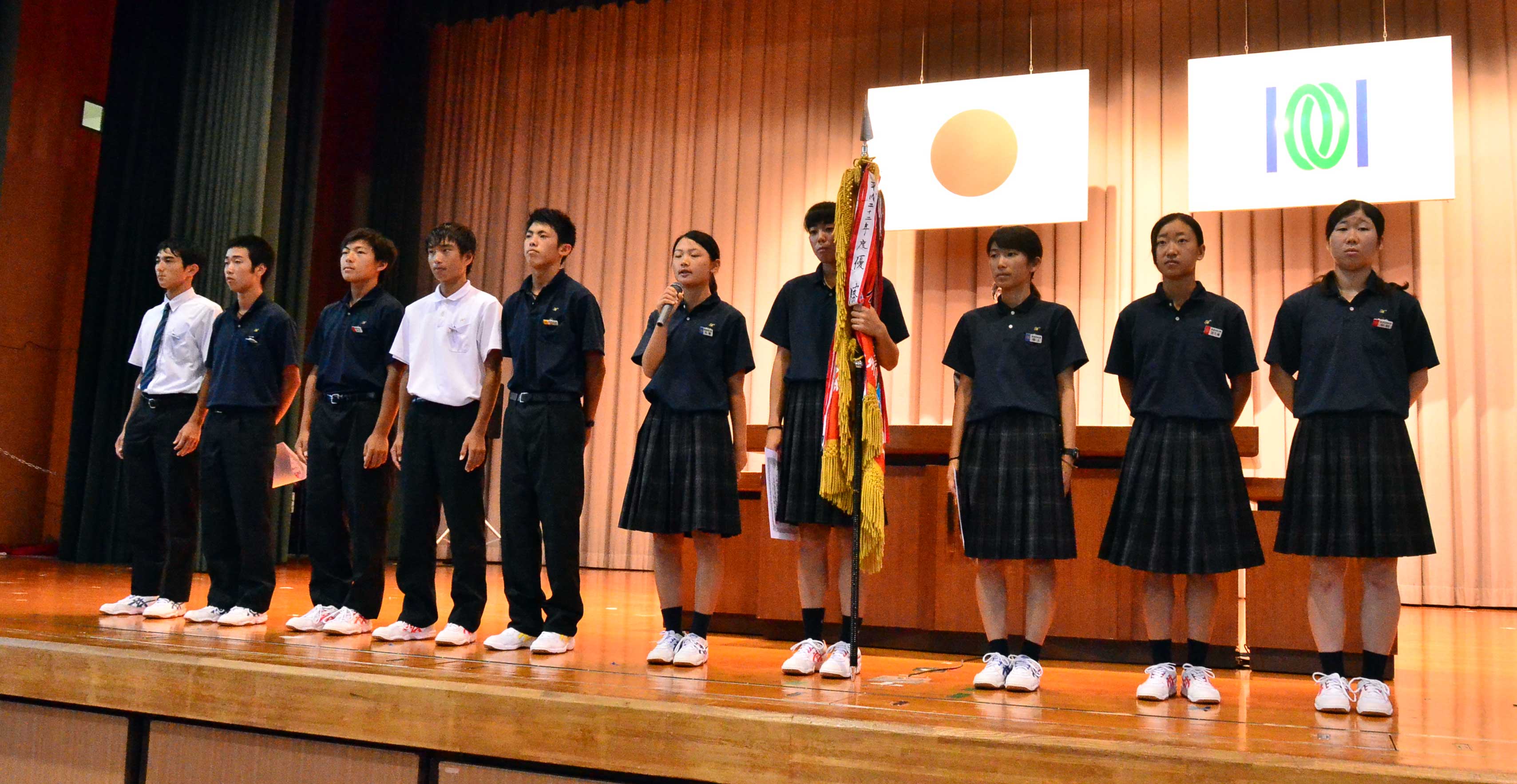 一方、九州大会で3位入賞の男子は、全国大会で更に上を目指しております。8月上旬、三重県で開催される全国総体で男女の大活躍を期待して、全校生徒で拍手を送りました。