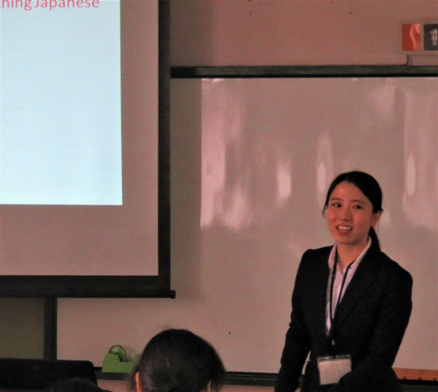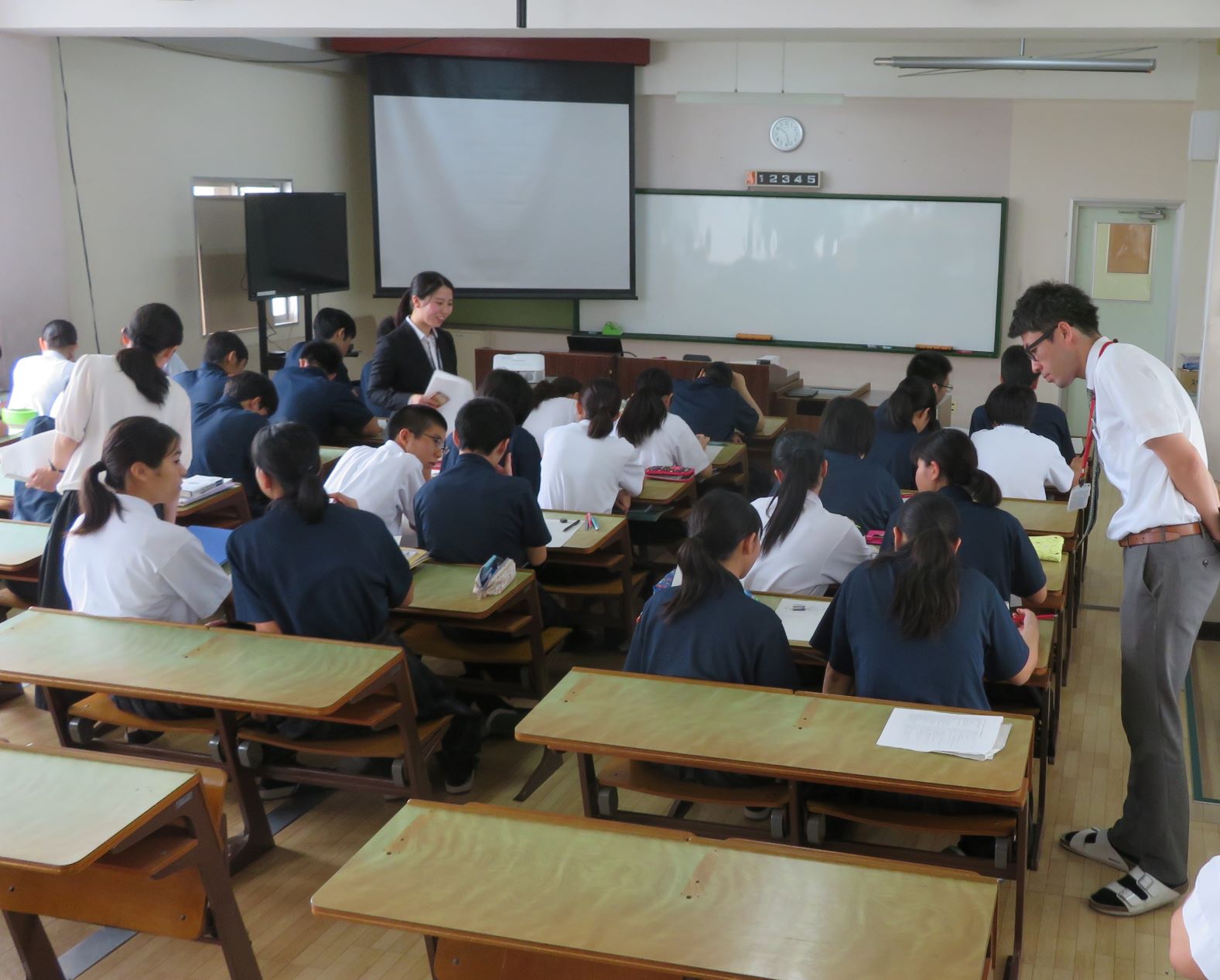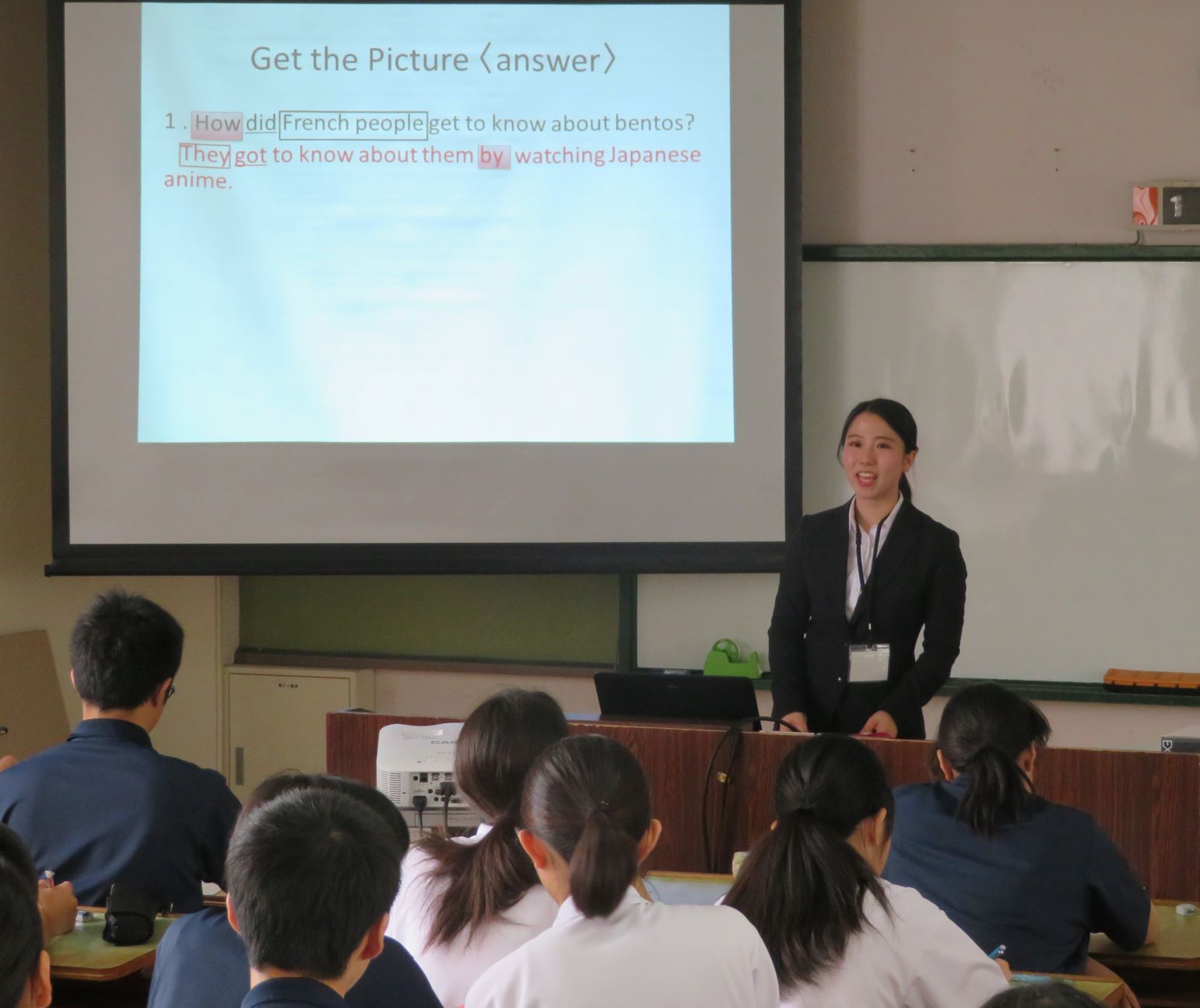 授業後、小薗先生は「教壇に立つ度に緊張していましたが、生徒の皆さんの授業に臨む真剣な姿勢や、「わかった!」や「楽しい!」という表情に励まされ、授業を終えることが出来ました。皆さんにとっても緊張する授業だった思いますが、一生懸命考えたり、発表してくれたり、と一緒に授業をつくることが出来、私にとっても楽しく、学びの多い時間でした。英語や多様な文化を学ぶことの楽しさが少しでも伝わり、今後のモチベーションに繋がっていくと良いなと思います。また、授業を行うにあたり、多くの先生方にご指導頂きました。本当にありがとうございました。」とホッとした表情で話してくれました。