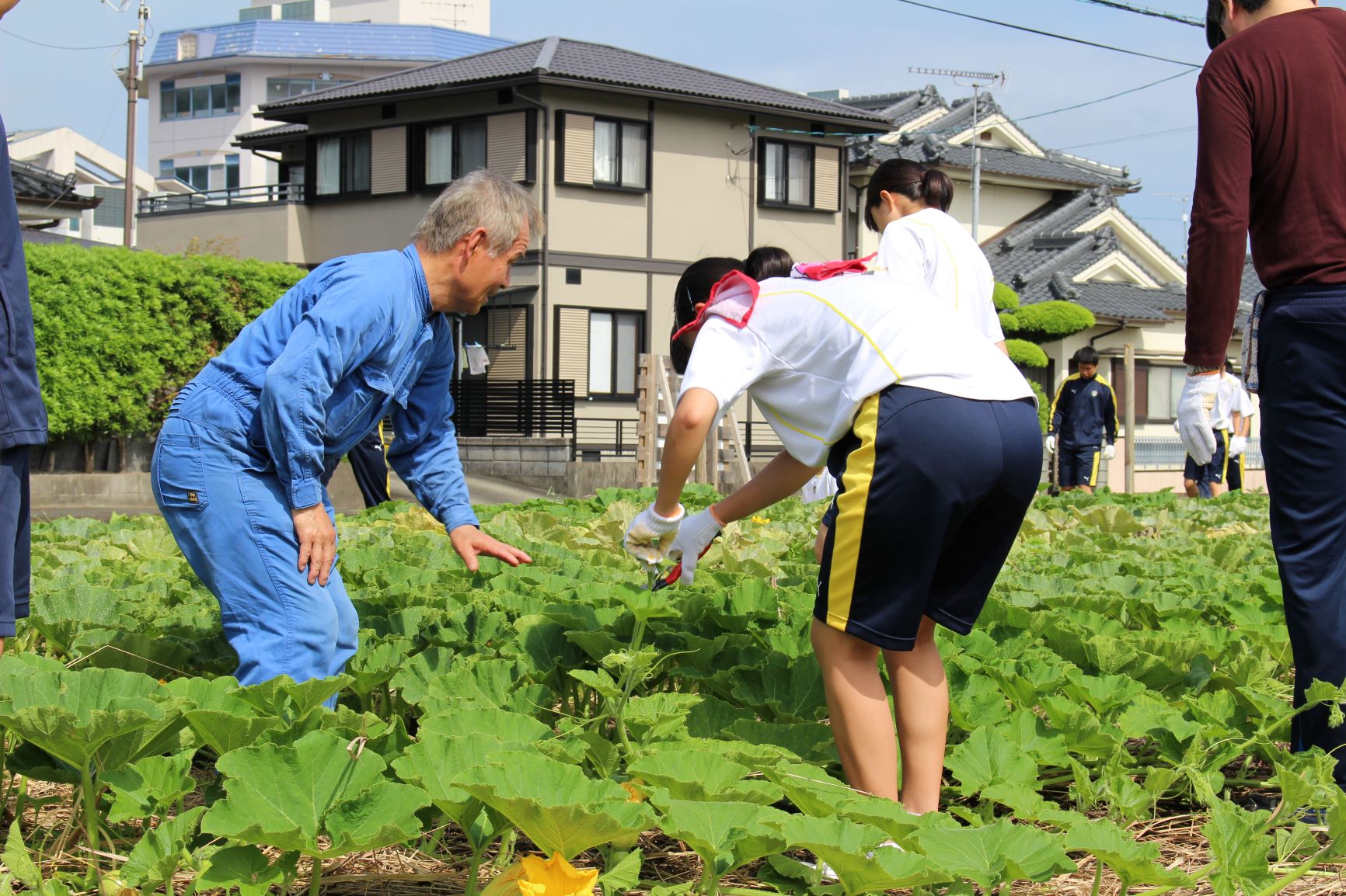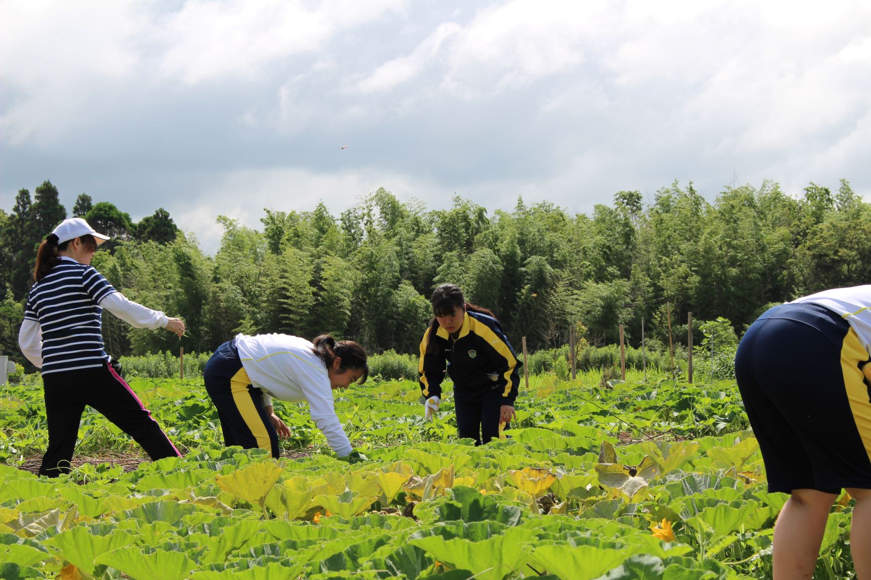 昨日6月5日(水)に本校農園において、かぼちゃの脇芽取りと受粉作業を行いました。