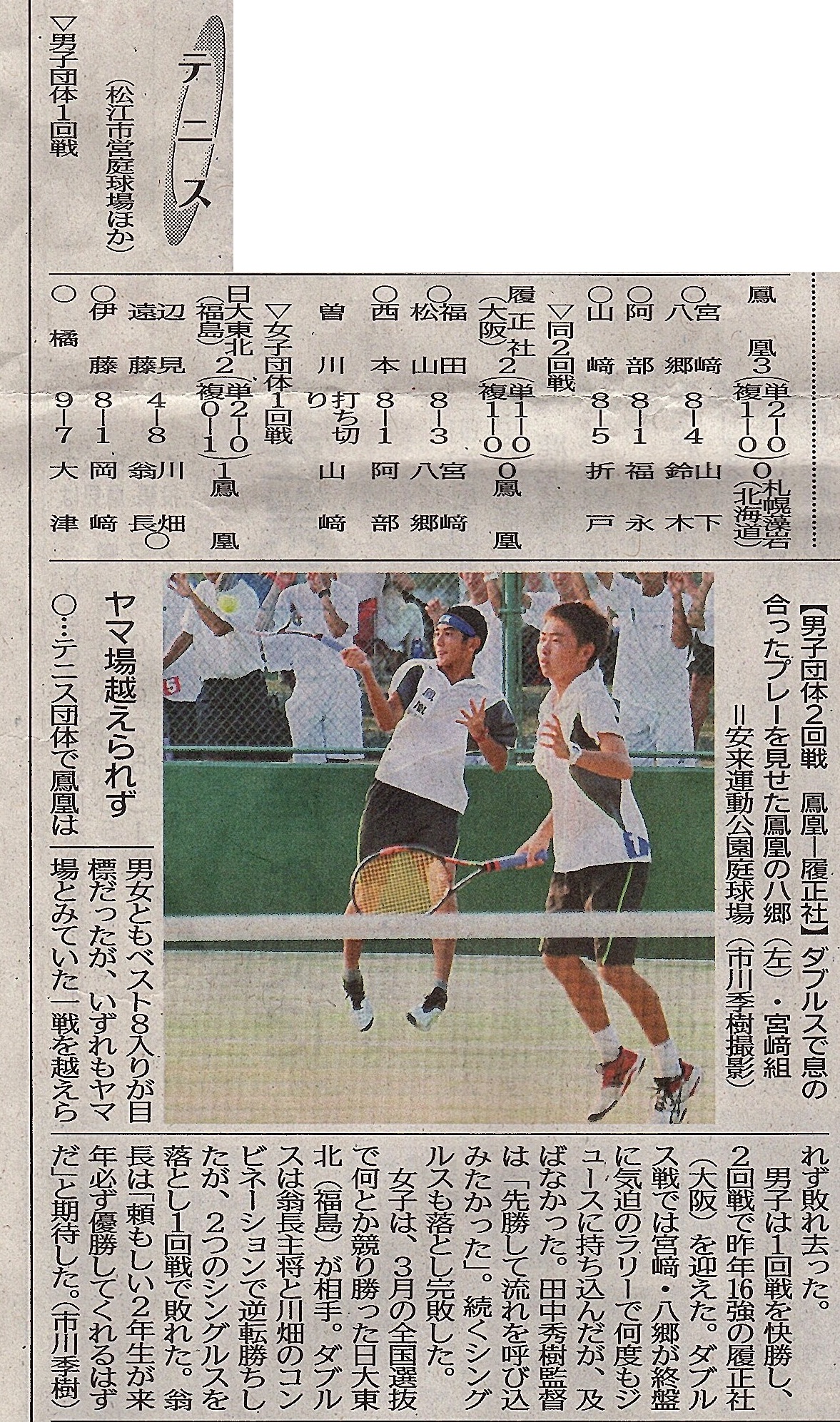 8/3 インターハイ速報 2016年8月3日 最終更新日時 : 2019年4月3日 hooh 2016インターハイ(中国総体)の速報です。 テニス競技は松江市で開催されており、 男子は1回戦を勝利し、2回戦で大阪の履正社に敗退。 女子は1回戦で福島の日大東北に敗戦。 目標であったベスト8進出はなりませんでした。 応援いただいた皆さん、ありがとうございました。 剣道・弓道は結果がわかり次第報告いたします。 いよいよ夏の体験入学も受付スタート!! ↓↓↓ クリック・タップしてください。 8月行事予定 2学期行事予定