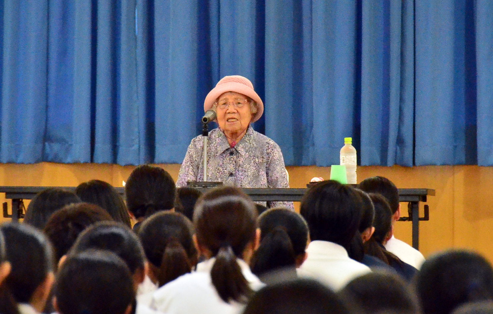5限目の3年生鳳凰学の時間に、鹿屋の星塚敬愛園自治会の副会長上野正子さん(91)をお招きし、お話をうかがいました。