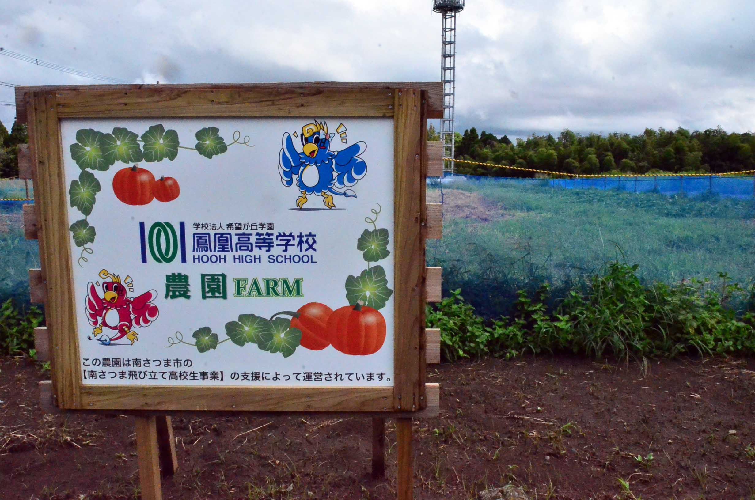 9/13(木) 農園に看板設置 2018年9月13日 最終更新日時 : 2018年9月14日 hooh 南さつま市の「飛び立て高校生事業」で採択された、本校の「かぼちゃ育成栽培商品加工」の一環として学校農園でかぼちゃを育てていますが、その農園に看板を設置致しました。この農園で育ったかぼちゃを加工して製造する鳳凰スウィーツは、10月下旬には完成予定です。 農園ではかぼちゃの苗の植え付けや、収穫をメディカルシステム科の生徒たちがやってくれました。体育館横の通りにありますので、ついでの折にご覧下さい。