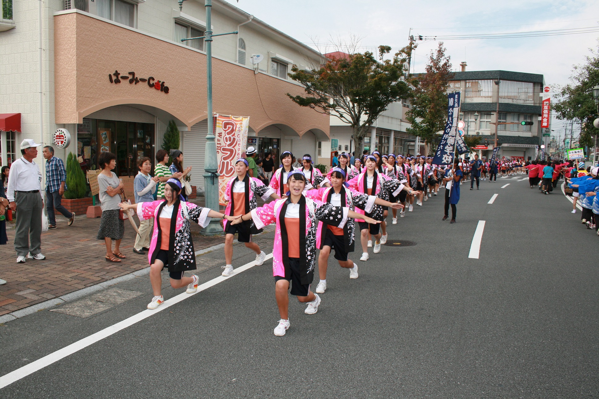 南さつま市内の他校とともに、迫力あるパレードを行いました。