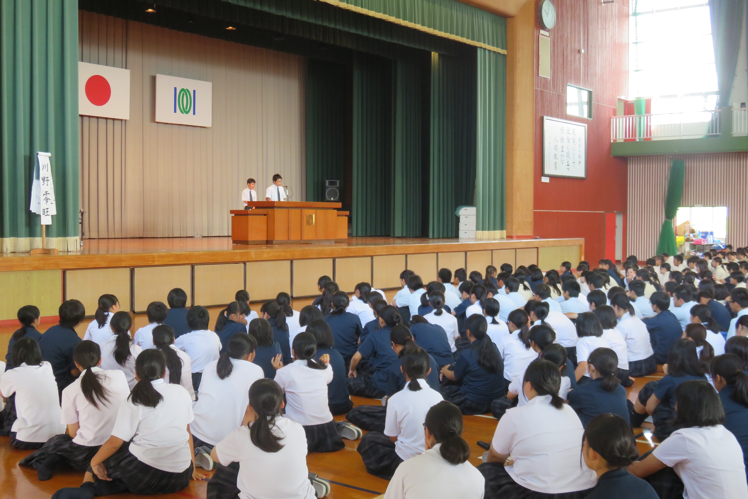 本日は体育館で生徒会の役員改選が行われました。