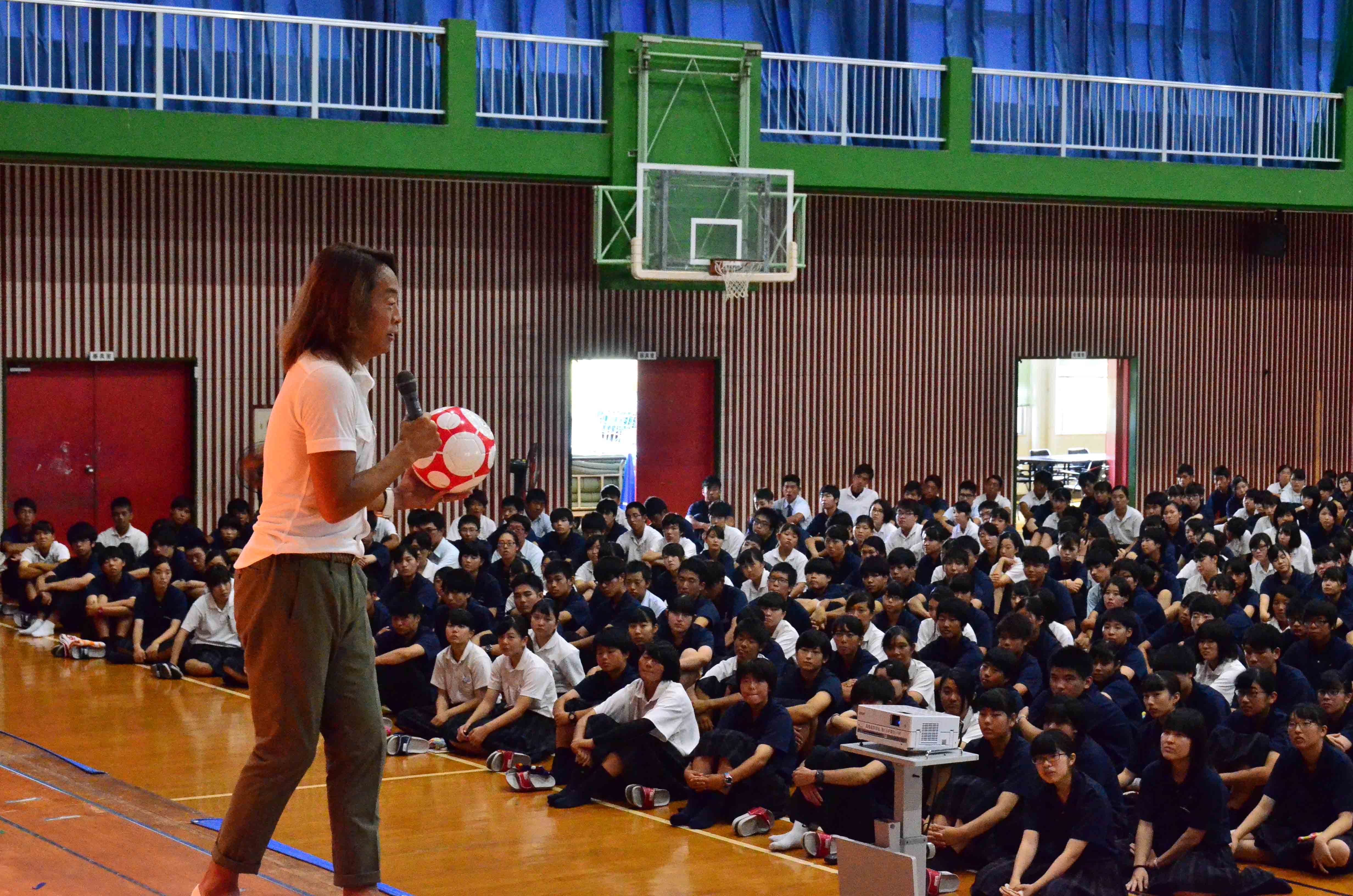 高校生1000人を前にして、自分が打ち込んでいる競技の用具を大切にすることや、どんなに小さなことでも進んでチャレンジする精神を持つこと、出会いに感謝することなどを、経験をもとに話してくれました。