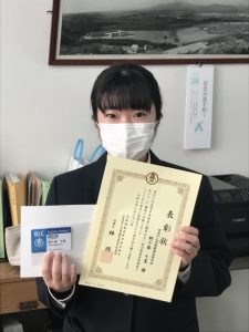 3年1組 野ヶ峯 千夏(谷山中出身)が、簿記、情報処理、ビジネス文章の3種目の検定で、1級を取得したことにより、全商3種目以上1級合格者として表彰を受けました。 3年間の地道な努力が実っての成果だと思います。おめでとう! […]