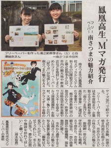 ♣南日本新聞「M’マガ記事」掲載 先日当ブログで紹介したフリーペーパーの話題です。 2月19日(月)付の「南日本新聞」18面に、 南さつま市の魅力を紹介した、 本校生徒によるフリーペーパー「M’マガ」(えむまが)について […]