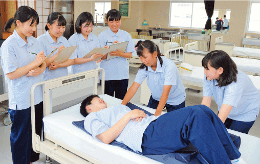 私は中学生の頃、地域の大好きなお年寄りの方々を近くで支えていた介護福祉士の姿に憧れてこの学科に入学しました。離島から海を渡って入学するときにたくさんの別れを経験し、しばらくは寂しいと思う時期が続きましたが、それでも、地元からの応援や高校で出会った仲間たちのおかげで、つらいことも乗り越えて、充実した生活を送ることができています。同じ夢を持つ仲間はとても大きな心の支えになっています。これからも同じ夢を持った素敵な仲間と、切磋琢磨しながら目標に向かい頑張ります。