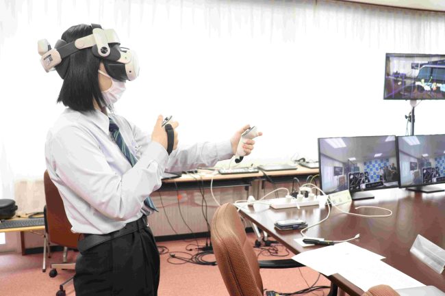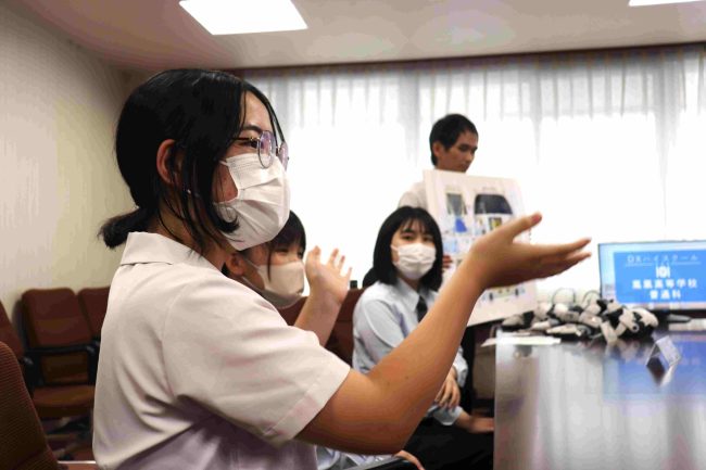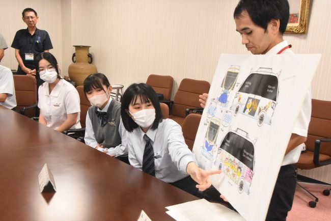 生徒から市長にデザインのコンセプトから作成で工夫したことなどを報告し、最後は作成時に使用したXRでのデザインを市長にも体験していただきました。
