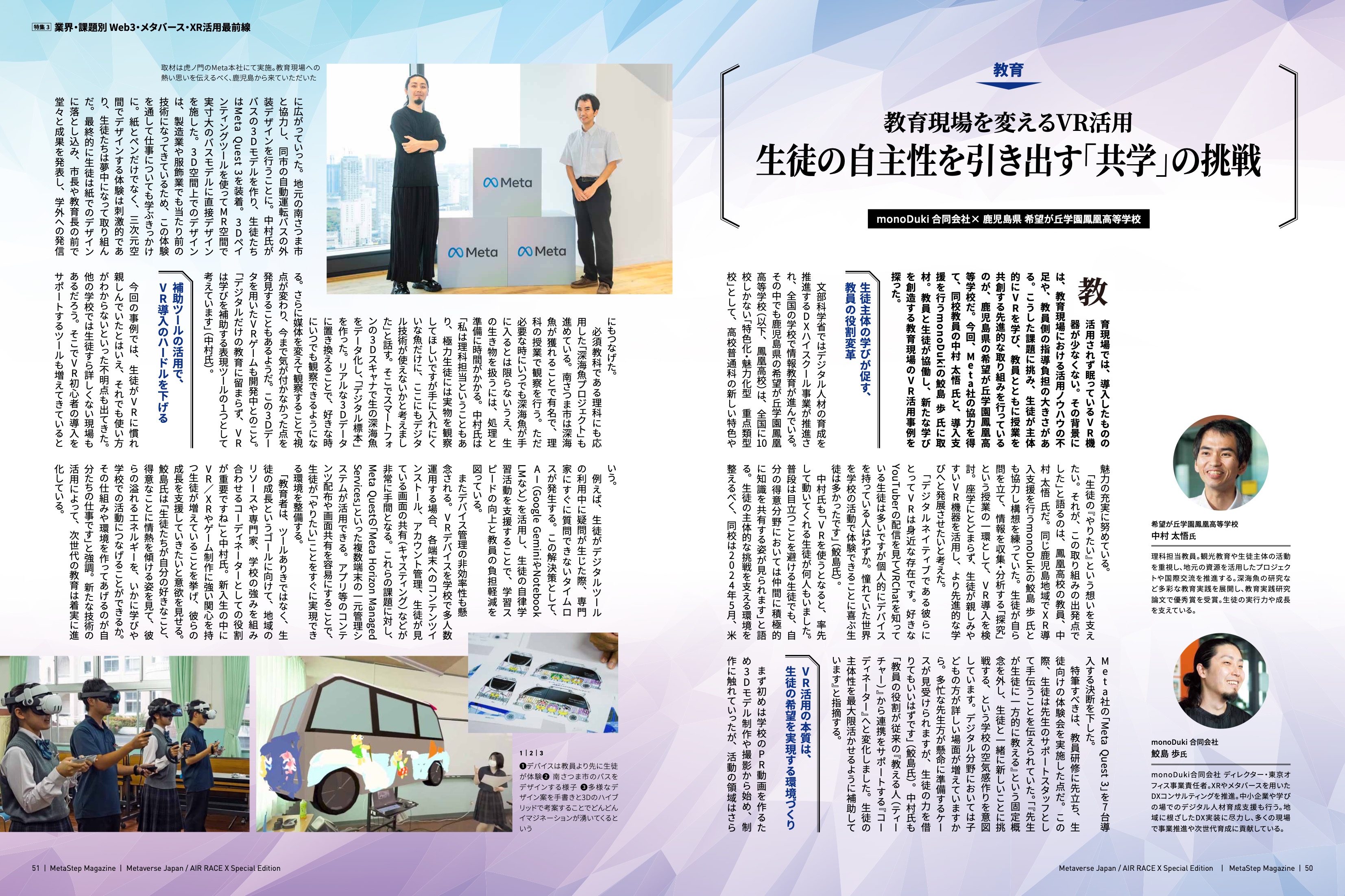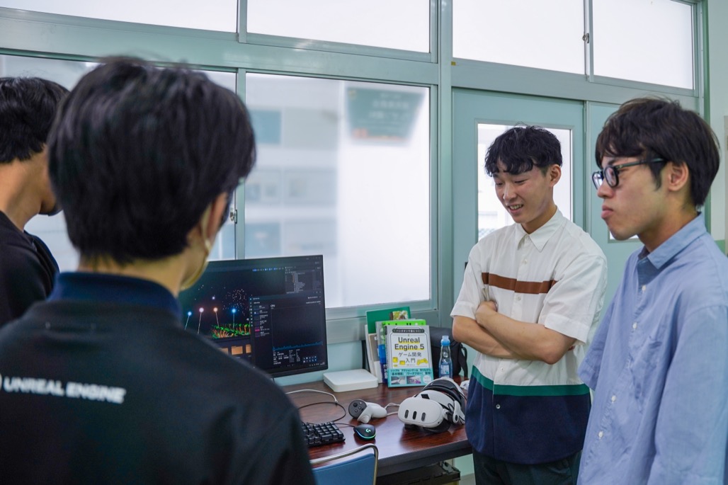 講演前には本校のデジタルものづくりラボ「d-Lab」にも来ていただき,生徒が制作したXRコンテンツも体験をしアドバイスをいただきました。