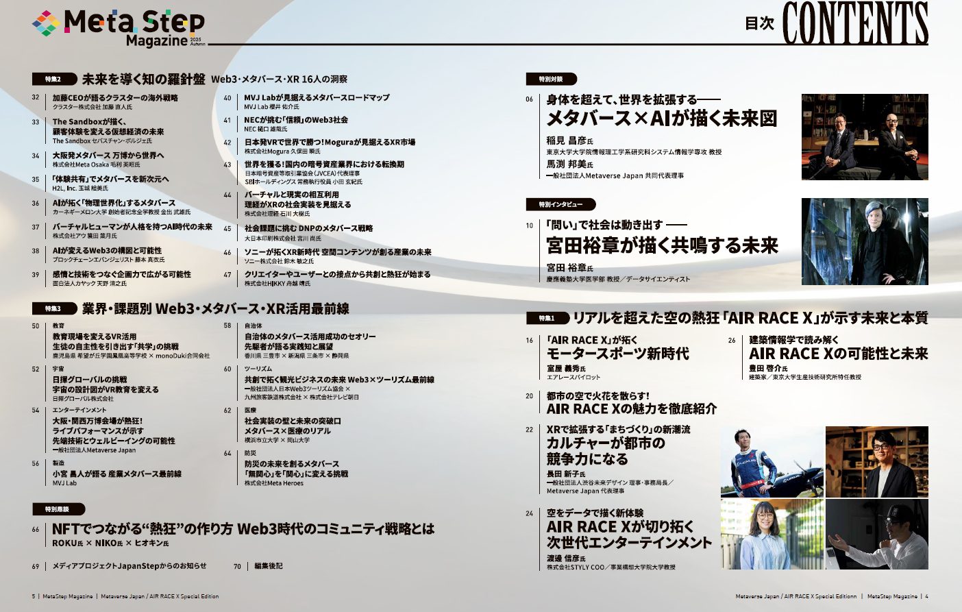 ◎慶應義塾大学医学部 教授/データサイエンティスト 宮田裕章氏インタビューやWeb3・メタバース・XR業界を牽引する有識者のインタビューなどオールカラー98ページ!(日英含む)
