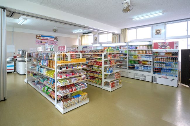弁当、サラダ、惣菜から文房具、日用雑貨まで品揃えが豊富です。昼食時間や放課後には、アイスやお菓子も食べられます。